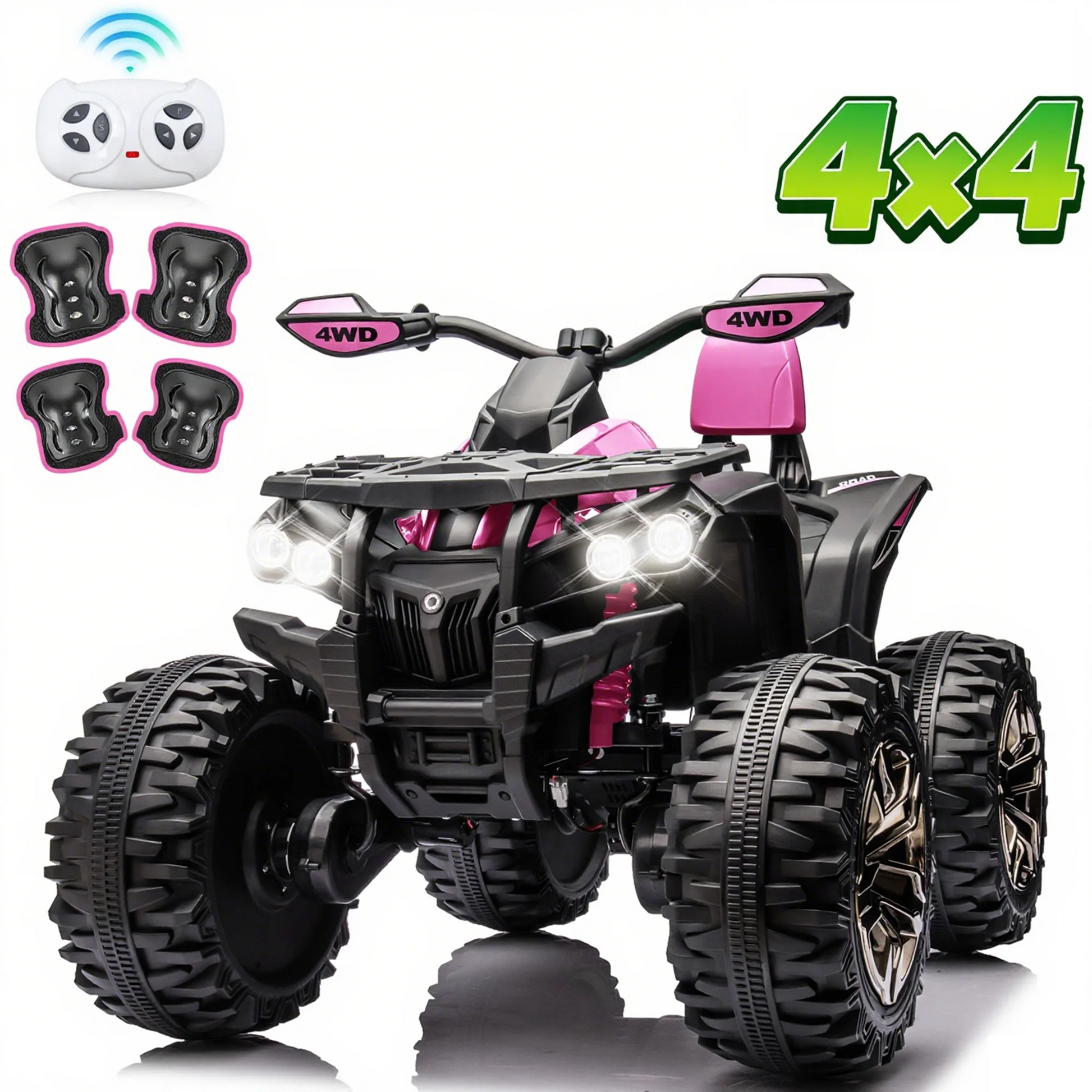24 Volt ATV for Kids, Joyracer 4 Wheeler for Kids, 4WD Power Car Wheels with 800W Motor, Bluetooth/MP3, Horn, Music, LED for Big Kids Gift, Pink