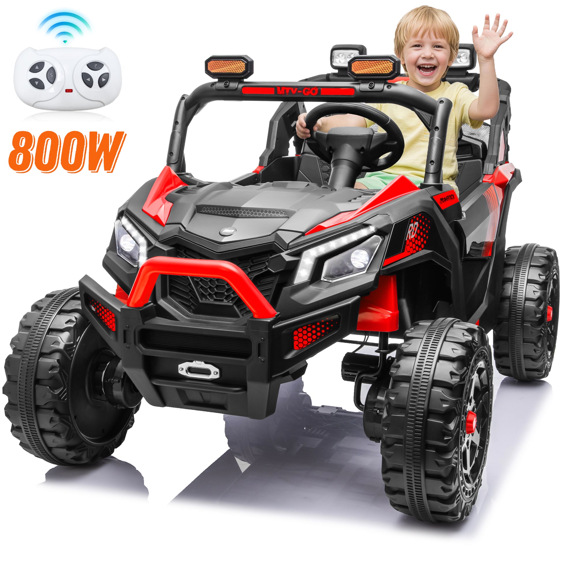 4WD 24 Volt Ride on Toys with Remote, Joyracer 2 Seater Power UTV Wheels with 800W Motors, Bluetooth, Spring Suspension, LED Light, Black