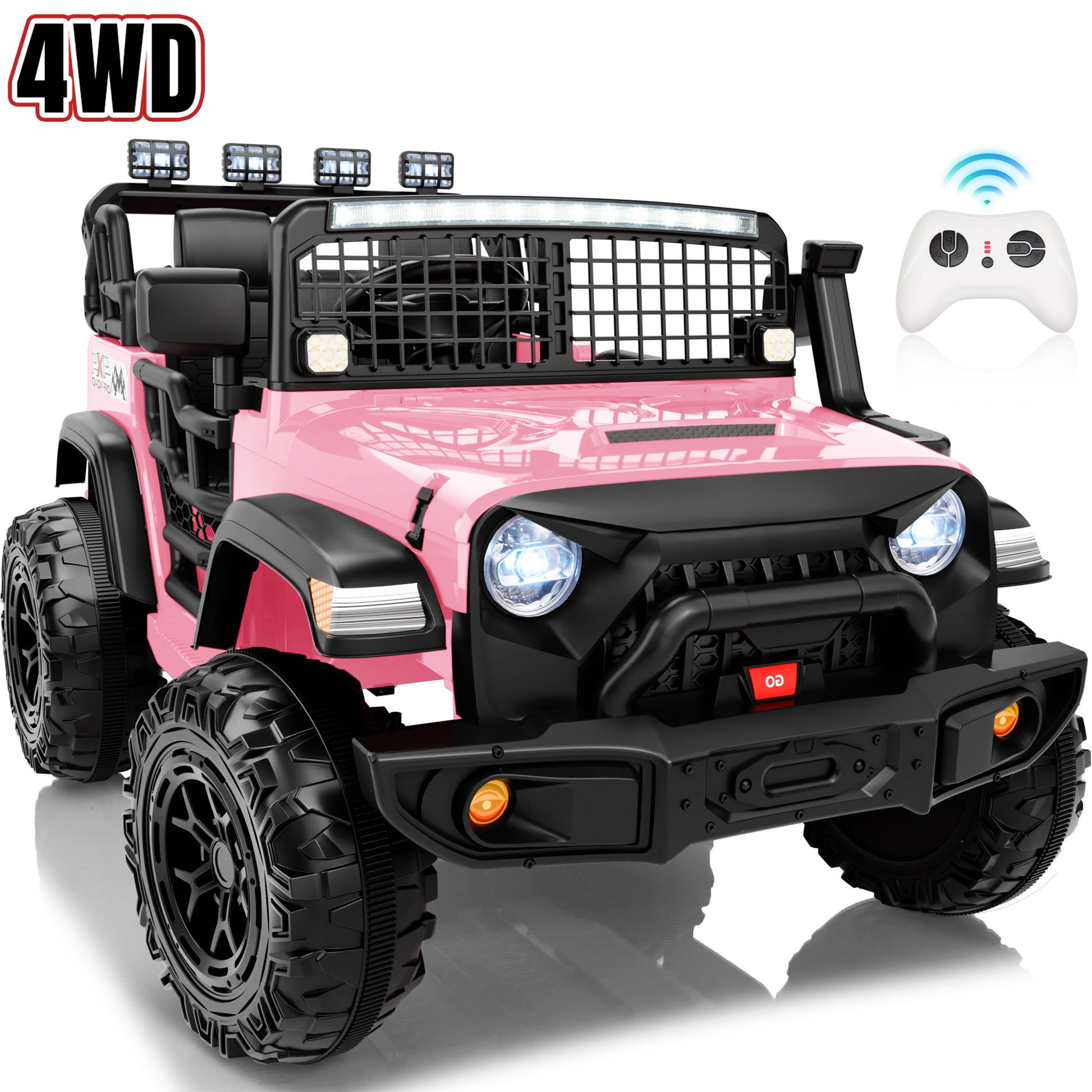 Joyracer 4WD 24 Volt Ride on Toys, 2 Seater Power Car wheels Truck with 800W Motors, Remote Control, Bluetooth, Spring Suspension, LED Light, Pink